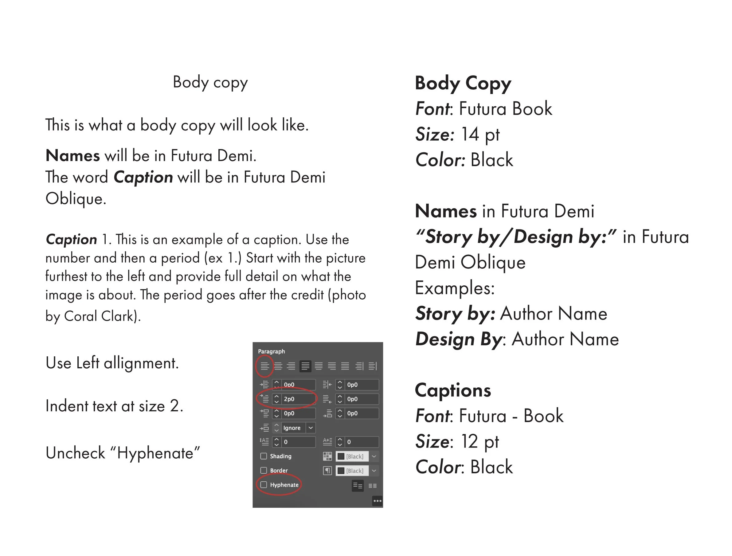 This text style guide was made for yearbook members to follow in their spreads. It created consistency across the entire book for a unified look.
