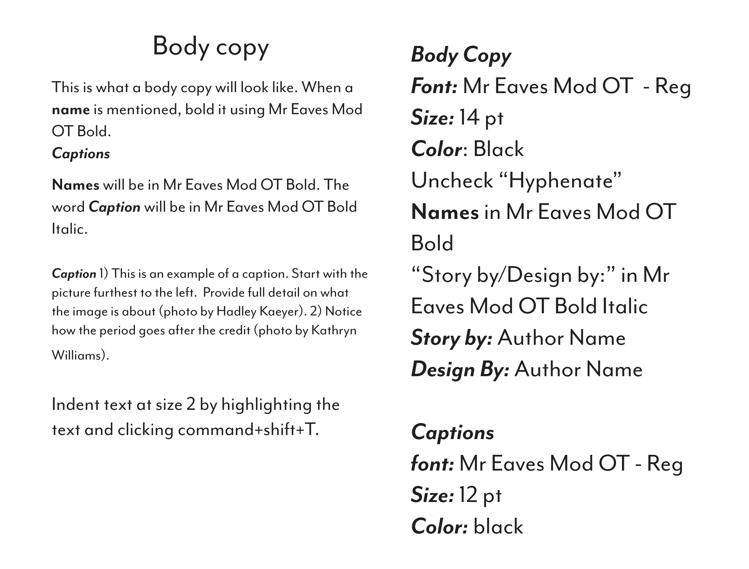 This text style guide was made for yearbook members to follow in their spreads. It created consistency across the entire book for a unified look.